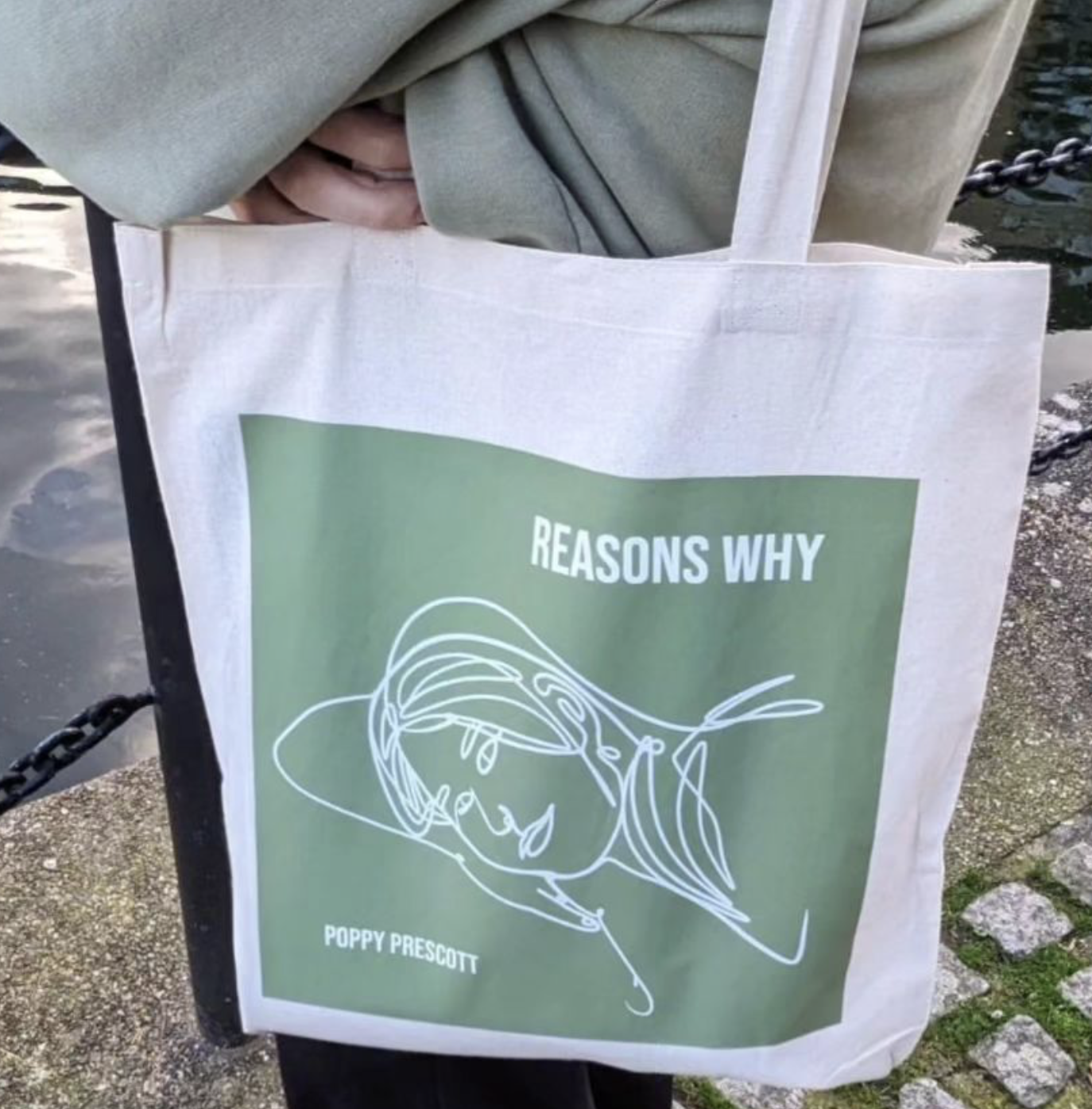 Sport the merchandise of a local indie musician you love! In 2025, buying merch is the most impactful way to financially support Poppy’s music, and she’s got a limited run of cotton tote bags and postcards that can be bought on Bandcamp or at gigs.